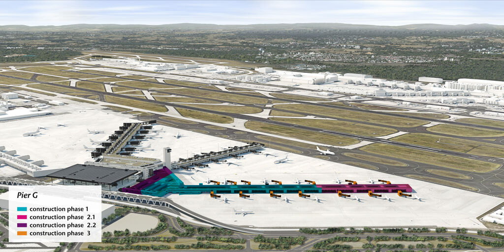 The Covid-19 pandemic unleashed an unprecedented crisis in civil aviation. Across the board, the industry saw passenger volumes plummet by more than 90%. Frankfurt Airport was no exception, suffering a massive drop in business. Eventually the aviation sector will recover, however, as past crises have shown. For this reason as well, Terminal 3’s flexible modular structure will pay major dividends. Currently the plan is to start operating Pier G and the main terminal building with Piers H and J all at the same time in 2026. Pier G has already been almost completely finished in 2022, though, to give Fraport greater flexibility in case it’s needed sooner.
