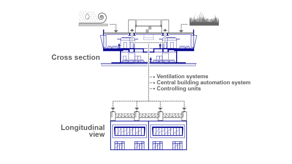 A variety of technical systems make the piers come alive. They include advanced plumbing, ventilation, heating, and security systems. Contrary to expectations, this space-filling equipment isn’t accommodated in the cellars but on the roofs of the piers. More precisely, inside huge steel frames resting on their roofs. One major advantage of putting everything up above is that it facilitates operations. It is easier to access and service, which can also be done during the day. And in case anything has to be completely replaced, it’s much easier to do it on the roof. Passengers also benefit from this “inside-out” arrangement: they enjoy more clear space inside the piers. No large equipment rooms block their view of the apron, for example.