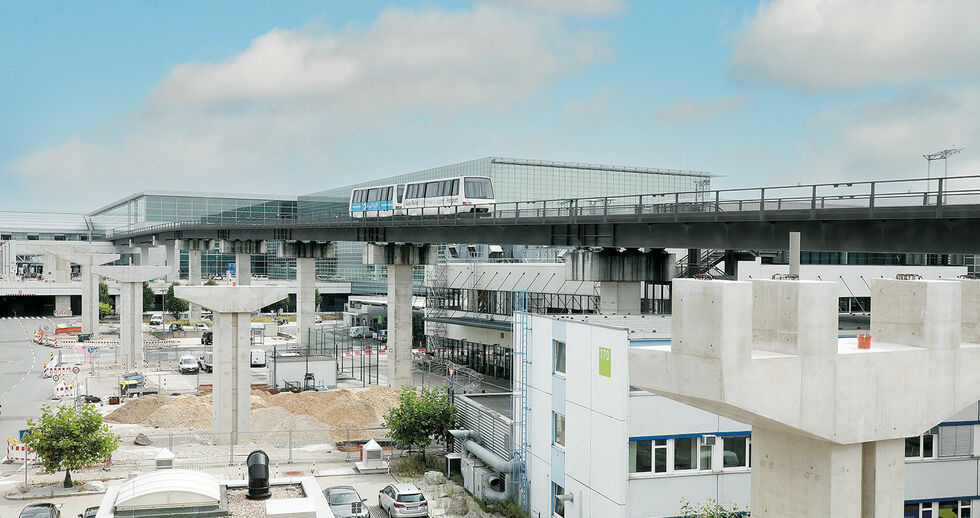 Eine dritte Variante drängte sich am Anfang aller Überlegungen auf. Es wäre auch möglich gewesen, Terminal 1 direkt mit Terminal 3 über einen Tunnel unterirdisch zu verbinden. Bei dieser Option hätten wir allerdings Terminal 2 nicht sinnvoll integrieren können. Allein beim Umstieg vom Bestandsystem in die sehr tief liegende neue Station wären jegliche Fahrstuhllösungen schnell an Kapazitätsgrenzen gelangt. Lange Wartezeiten für Fluggäste wären unausweichlich gewesen. Zusätzlich wäre die Untertunnelung der zwei Start- und Landebahnen extrem herausfordernd gewesen – auch für den laufenden Flugbetrieb. Deshalb haben wir auch diese Variante verworfen.